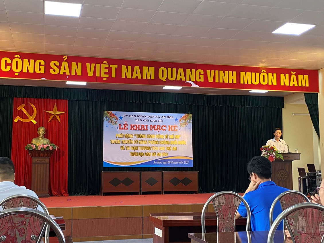 Xã An Hoà tổ chức khai mạc hè năm 2023, tuyên truyền công tác phòng chống tai nạn thương tích, đuối nước trên địa bàn xã An Hoà. Thực hiện Kế hoạch số 122/KH-BCĐ của Ban Chỉ đạo hè huyện An Dương về Tổ chức Hoạt động hè và Chiến dịch TNTN năm 2023; Ban Chỉ đạo hè xã An Hòa xây dựng Kế hoạch hoạt động hè năm 2023, cụ thể như sau: