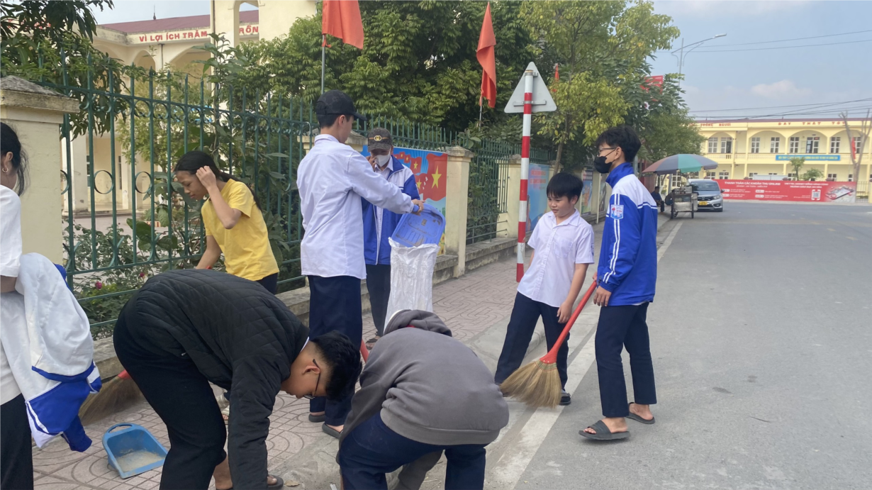 Bên cạnh nhưng giờ học trên lớp thì việc các em được tham gia lao động tập thể không chỉ góp phần rèn luyện thân thể mà còn giúp các em nêu cao tinh thần tập thể và sự đoàn kết của cả lớp. Đây là việc làm mang nhiều ý nghĩa thiết thực, thể hiện tinh thần tham gia tích cực các hoạt động xã hội, đặc biệt là tham gia chung tay xây dựng quê hương xanh - sạch - đẹp. Qua hoạt động này, nhằm đảm bảo vệ sinh môi trường, tạo thông thoáng cho người tham gia giao thông và tuyên truyền vận động kêu gọi người dân sinh sống trên các tuyến đường tham gia hưởng ứng giữ gìn vệ sinh chung, không nên vứt rác, đổ nước thải ra đường, góp phần tô đẹp hơn đường làng, ngõ xóm và bảo vệ môi trường.